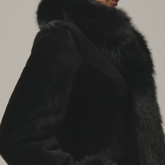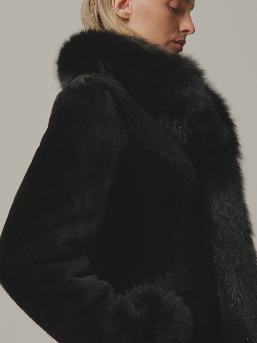 Women’s Black Afghan Penny Lane Coat – Suede Leather with Faux Fur Lining & Trim