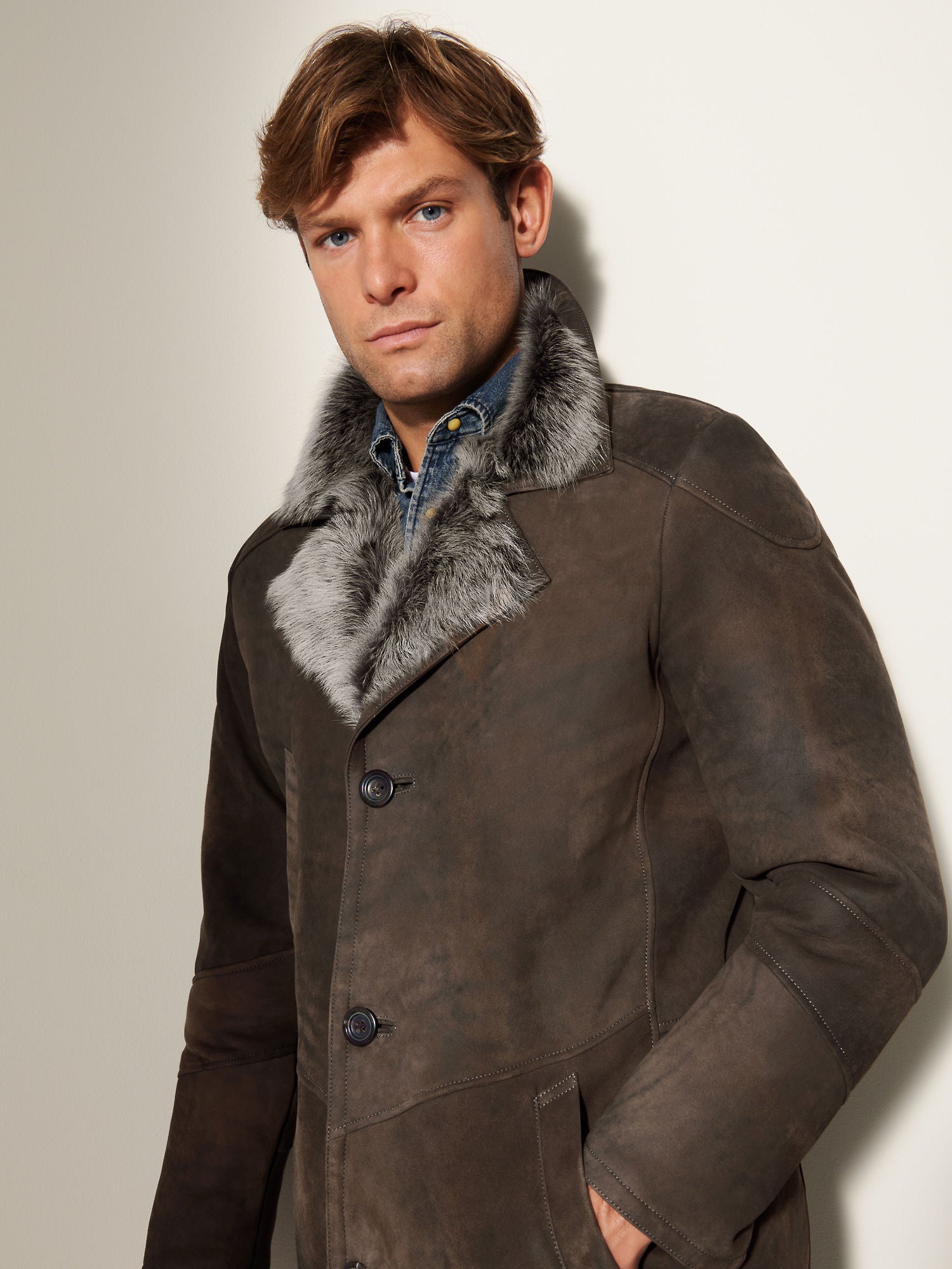 Men Blade Dark Brown Shearling Coat