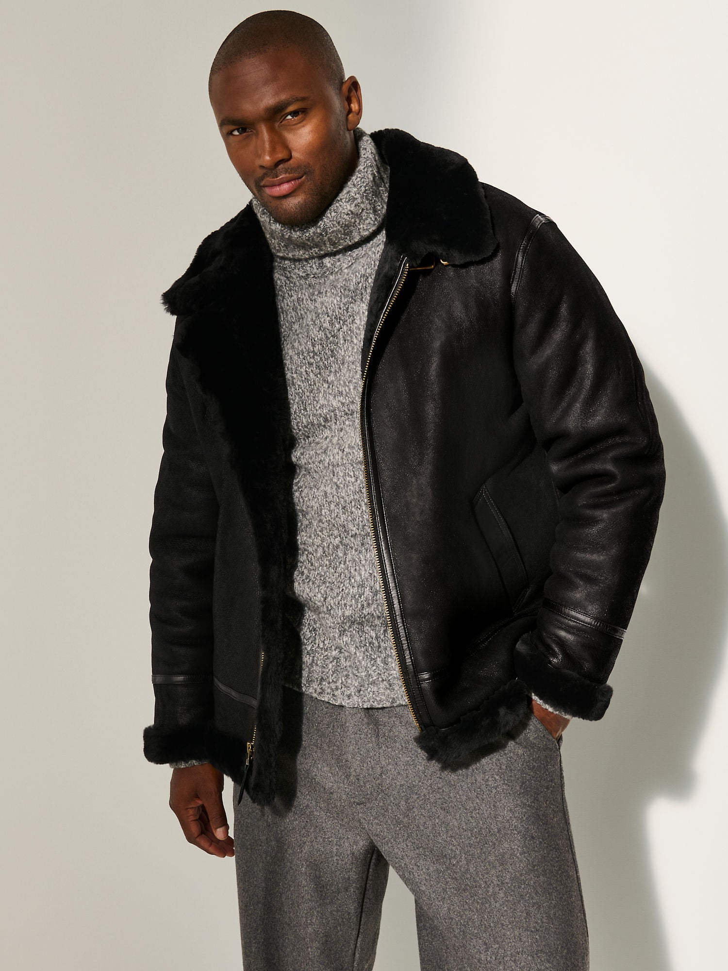 Perfect for winter travel, casual wear, or statement street style, this black shearling aviator jacket blends military heritage with modern masculine fashion. A timeless investment piece built for warmth, performance, and standout style.