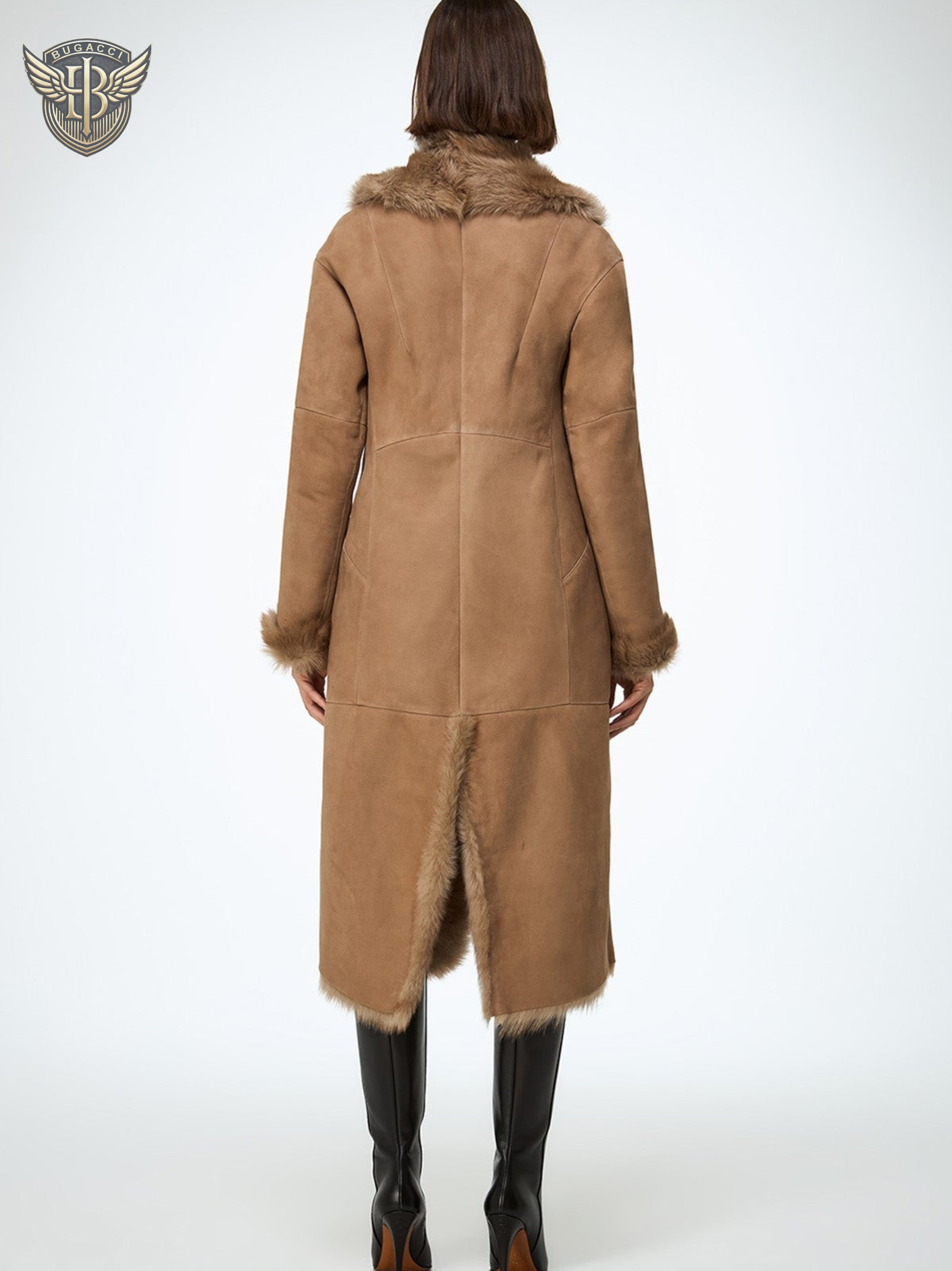 Women’s Beige Shearling Leather Coat– Real Sheepskin Suede Leather and real Fur Winter Coat