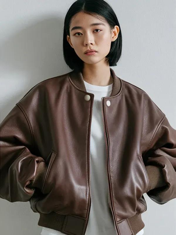 Channel effortless vintage energy with this oversized bomber jacket for women, handcrafted from genuine brown leather. Inspired by the classic 90s silhouette, this piece offers both relaxed comfort and timeless edge—perfect for layering in cooler months.
